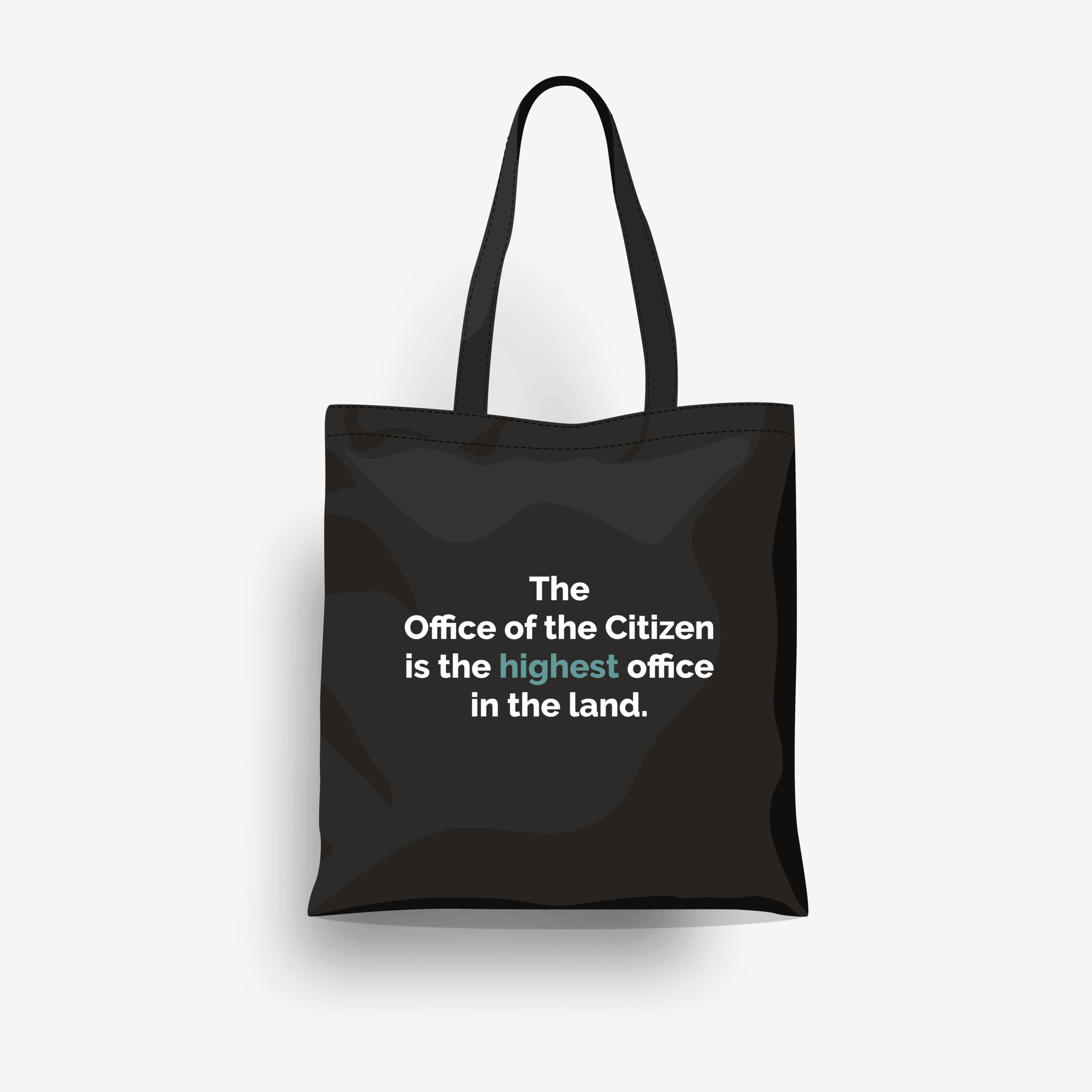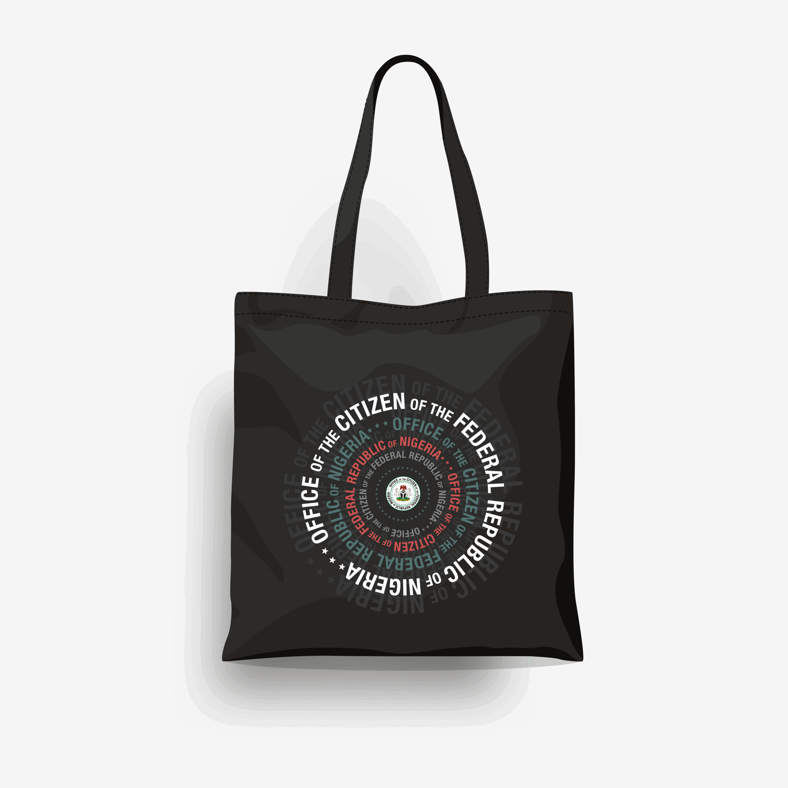 This bold black tote features a circular design proudly declaring: Office of the Citizen of the Federal Republic of Nigeria.